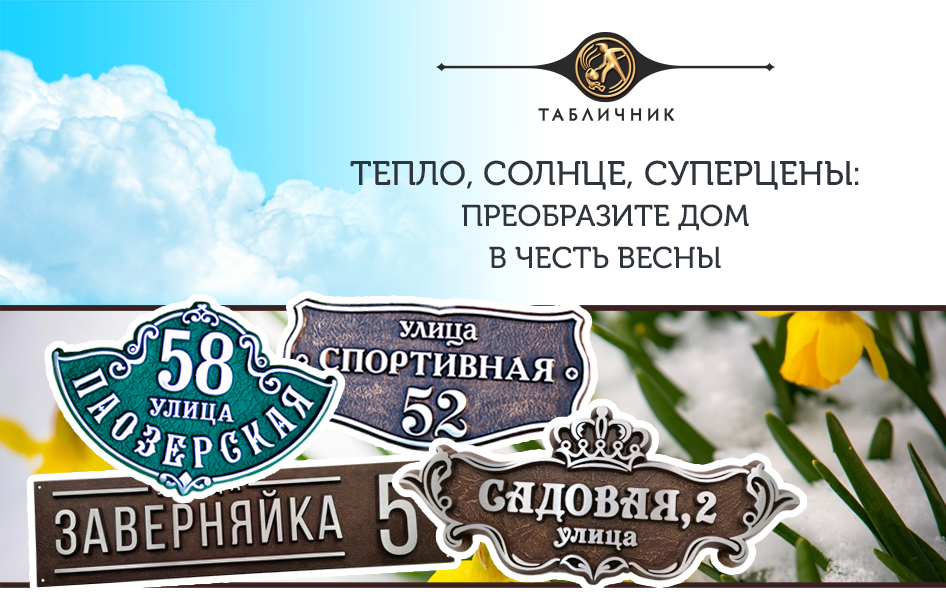 Источник фонового фото на баннере: GettyImages Дома, как и люди, запоминаются по деталям. Красная дверь, уютное крыльцо, кованый фонарь или стильная адресная табличка из металла – именно такие «мелочи» формируют образ и настроение. А чем уникален ваш дом? Если ему не хватает ярких деталей, сейчас самое время это исправить. Ведь пришёл апрель – первый по-настоящему весенний месяц! И не с пустыми руками, а с солнцем, цветами и скидками! ☀️ По такому случаю мы запустили акцию с широким размахом – 12–15% на литые адресные таблички из алюминия! Адресная табличка – это не просто указатель. Она способна задать стиль всему дому, подчеркнуть его характер и рассказать о ваших вкусах. Хотите, чтобы дом выглядел роскошно и респектабельно? Выбирайте адресные таблички в стиле барокко, модерн или рококо. Нравится чёткость и простота? Подойдёт хай-тек или сдержанная классика. Манит эстетика старины глубокой? Тогда вас зацепит готика с её острыми пиками и затейливыми шрифтами. Душа просит тёплой ностал