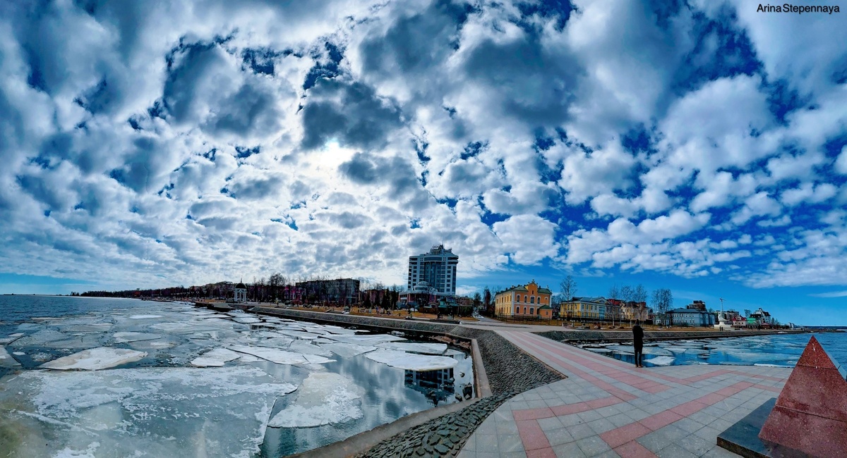 Известная фотограф Карелии поймала волшебный момент. Магию природы показала на своей странице в соцсети «ВКонтакте» фотограф Арина Степенная. Петрозаводчанка рассказала о своих впечатлениях. Так, блинчиковые облака, словно зеркало, повторяли очертания последних льдин на Онежском озере в вербное воскресенье, отметила фотограф.