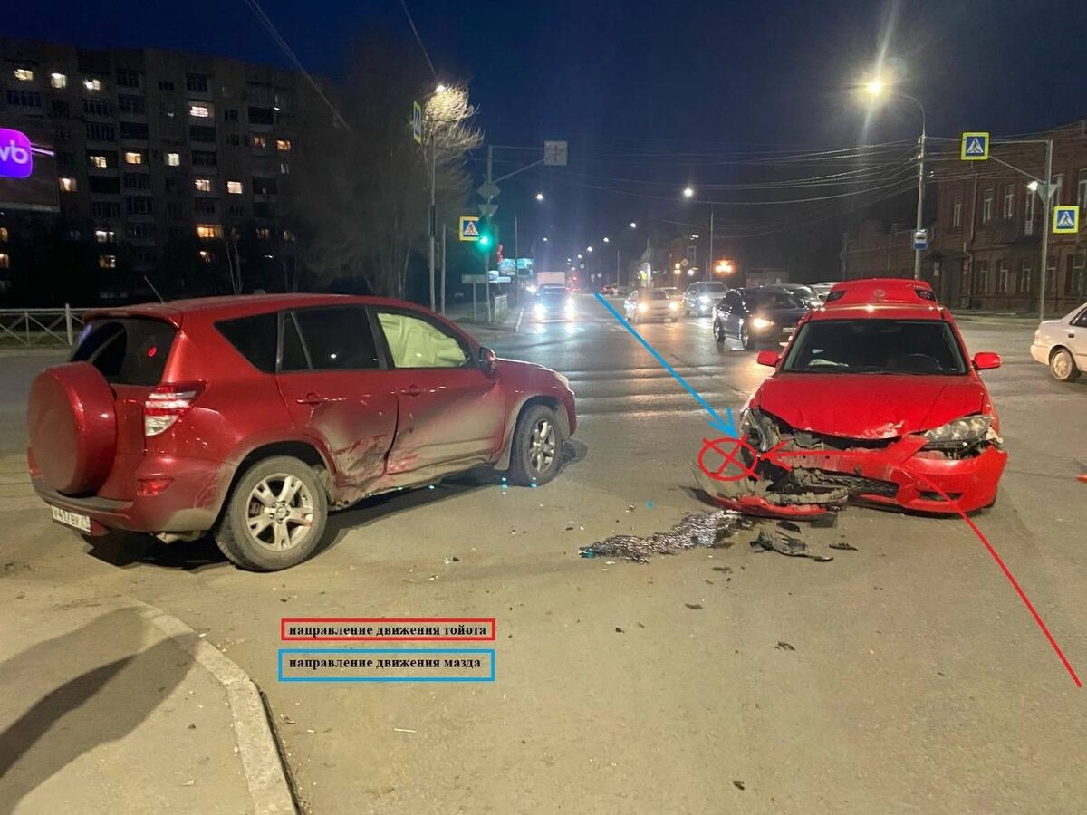 Женщина, 1987 года рождения, управляла автомобилем «Toyota RAV4». Двигаясь по ул. Орджоникидзе и поворачивая налево на регулируемом перекрестке с ул. Булатова, она не уступила дорогу и врезалась в автомобиль «Mazda3», за рулем которого находился мужчина 1988 года.