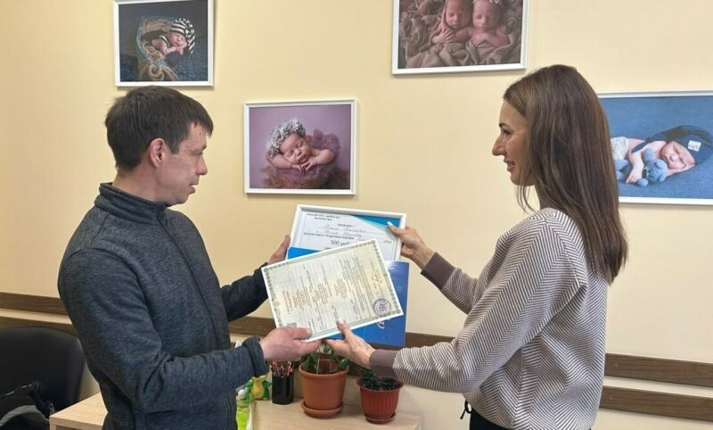 Папе малышки вручили свидетельство о рождении вместе с памятным знаком «Родившемуся в Камчатском крае» и именным свидетельством, что их дочь Есения стала пятисотым ребёнком, зарегистрированным в Петропавловске в 2025 году.