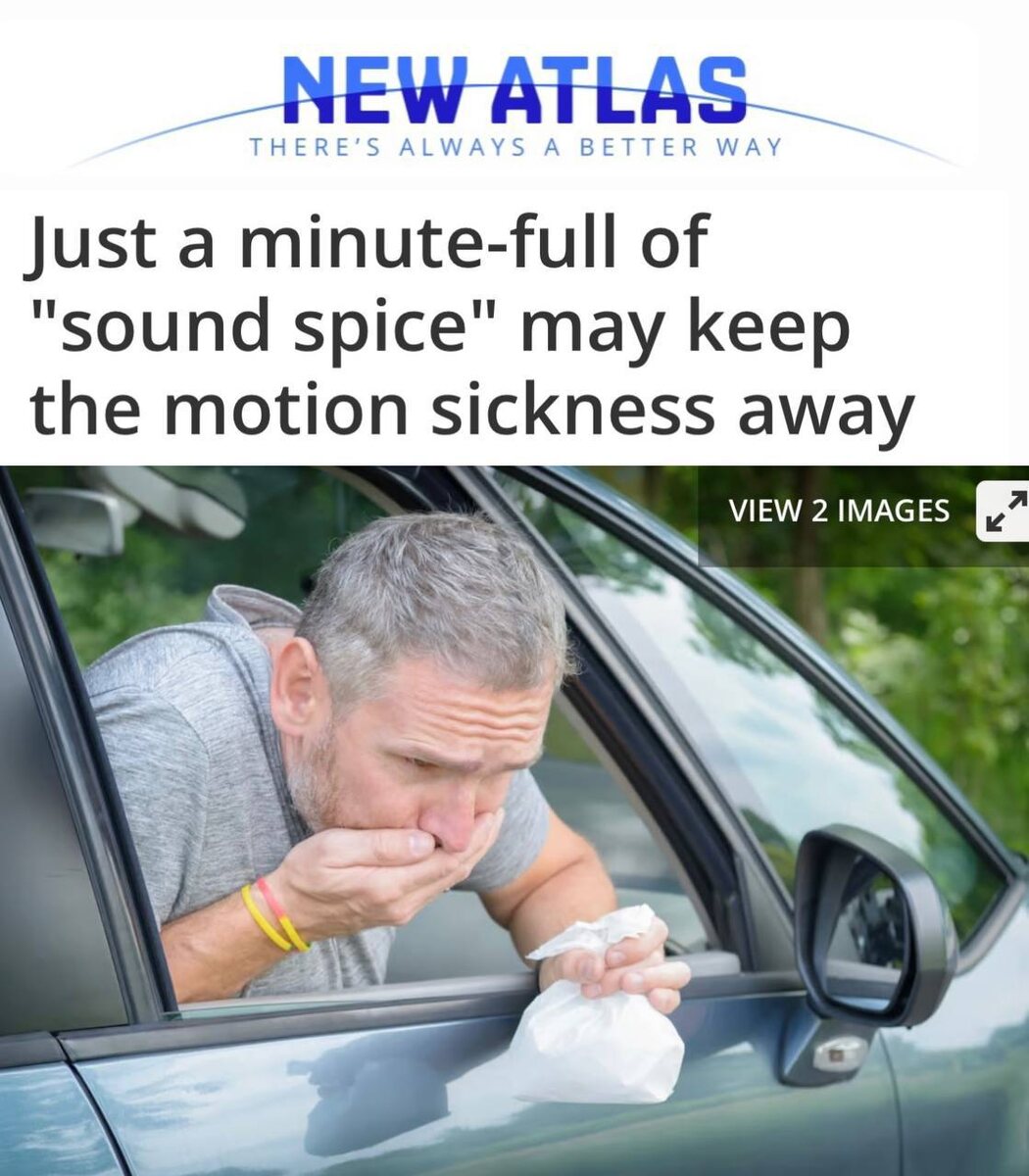 Укачивание — проблема, знакомая многим: будь то поездка на автомобиле, морское путешествие или перелёт. Но теперь, возможно, появилась простая и безопасная альтернатива лекарствам — звук. Согласно новому исследованию, опубликованному группой ученых, всего одной минуты прослушивания специального звукового сигнала может быть достаточно, чтобы значительно облегчить симптомы укачивания — такие как тошнота и головокружение. Этот звук получил название «sound spice» и представляет собой сигнал с частотой 100 герц и громкостью 65,9 дБА — это уровень, сопоставимый с обычным шумом окружающей среды. «Наше исследование показало, что кратковременная стимуляция с использованием уникального звука облегчает симптомы укачивания», — утверждают авторы исследования. Они подчеркивают, что такой метод безопасен и не требует медикаментозного вмешательства. Результаты эксперимента дают надежду тем, кто часто сталкивается с укачиванием, но не хочет или не может принимать таблетки. Возможно, в будущем подобные