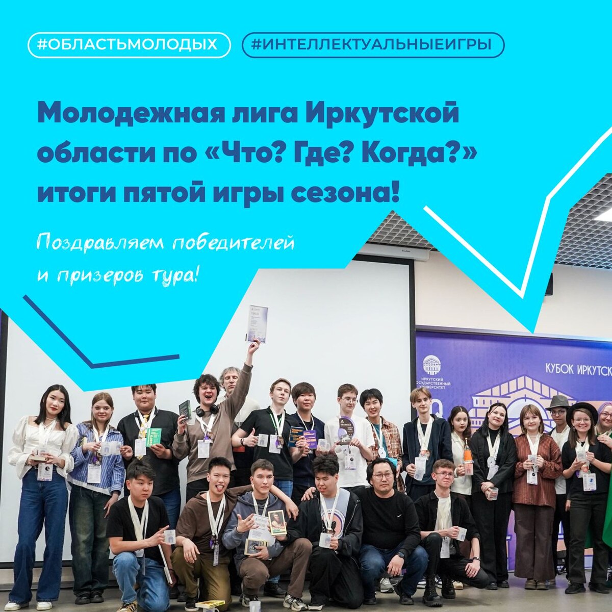 Молодежная лига Иркутской области по «Что? Где? Когда?»: итоги пятой игры сезона!🔥 В игре приняли участие более 110 команд, представившие 17 населенных пунктов региона. Спешим поделиться с вами итогами турнира! Зачет ВУЗов: 🥇1 место - Борщ (ИГМУ): 30 верных ответов; 🥈2 место - Френдзона (БГУ): 28 правильных ответов; 🥉3 место - 1 мая (ИГУ): 27 верных ответов. Зачет ССУЗов: 🥇1 место - Медицинский БУМ (Черемхово); 🥈2 место - П.Н.И. (Поколение новых интеллектуалов) (Железногорск-Илимский); 🥉3 место - Шахтёры (Новонукутск). Молодежный зачет: 🥇1 место - Боевые хомяки (Иркутск); 🥈2 место - Знатоки по жизни (Куйтун); 🥉3 место - Нас попросили (Усть-Кут) и Позитив (Анга). 📎Подробные результаты игры доступны по ссылке. Также доступна сумма результатов перед последним туром. Поздравляем победителей и призеров тура!👏 Молодежная лига Иркутской области - новый проект Министерства по молодежной политике Иркутской области направленный на развитие движения интеллектуальных игр в реги