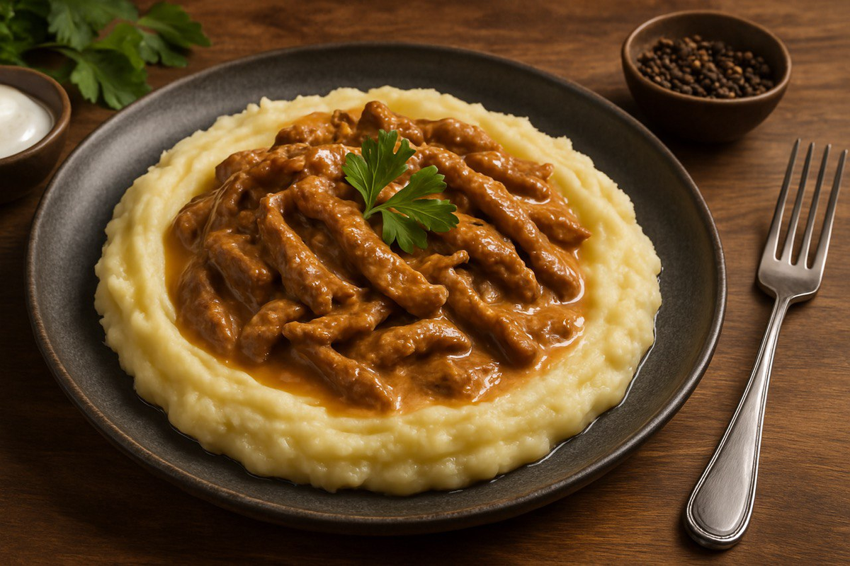 — Знаете, в каждой семье есть три вещи, которые портят отношения: 1. Кредит. 2. Тёща. 3. Совместная готовка. Особенно, когда один из супругов решил, что у него «всё под контролем». Обычно это говорит тот, кто никогда ничего не контролировал — особенно температуру на плите. Вот, например, бефстроганов. Казалось бы — мясо, лук, сметана. А звучит, как иностранный любовник. — Кто это тебе звонил?! — Это... Бефстроганов. Мы… тушились. Так вот. Чтобы приготовить это блюдо и остаться в добрых отношениях с домашними, нужно соблюдать три правила: 1. Не спорить, как правильно. 2. Не спрашивать: «Ты уверен, что это говядина?» 3. Не сравнивать с маминым. - Говядина — 500 граммов. Только не та, что «на акциях». Настоящая. Без жил и сомнений. - Лук — 1 штука. Не больше. Иначе глаза слезятся, как у жены после отпуска с твоей мамой. - Мука — 1 ложка. Лучше столовая. Не чайная. Мы же для диеты варим. - Сметана — 200 мл. Настоящая, жирная. Как воспоминания о Советском Союзе. - Масло — растительное для м