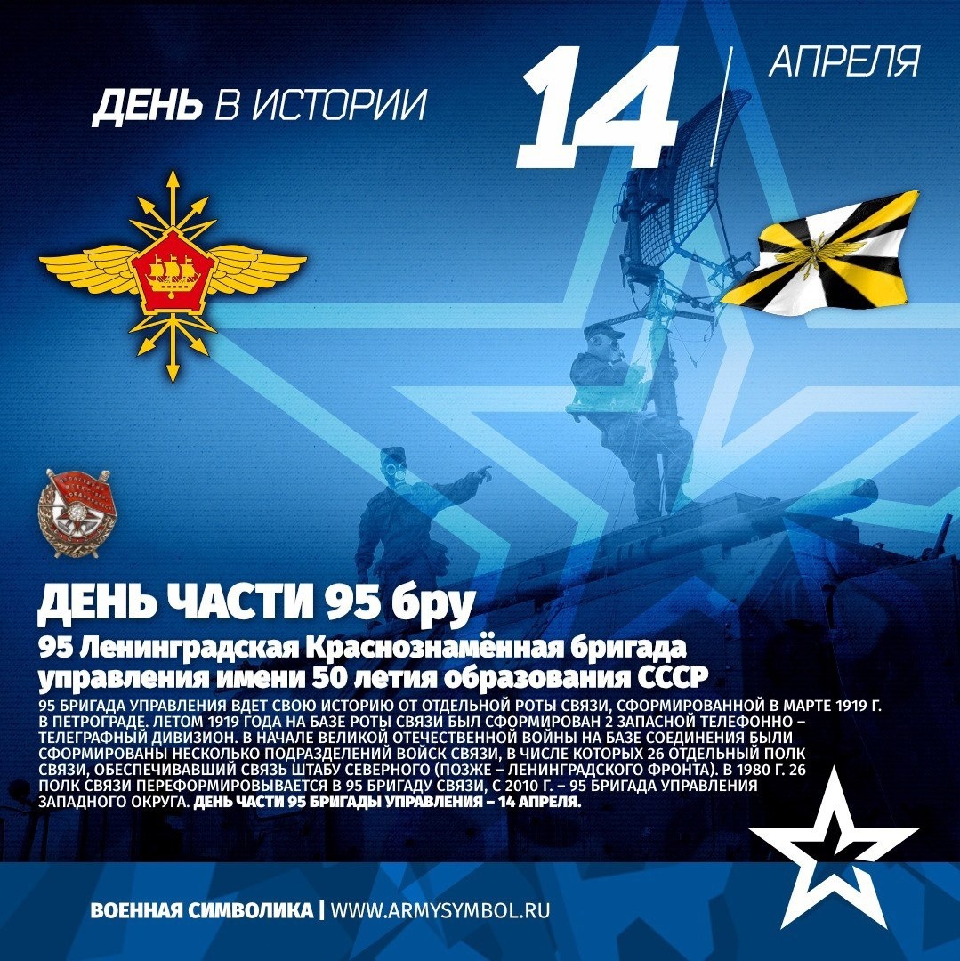 95 бригада управления вдет свою историю от отдельной роты связи, сформированной в марте 1919 г. в Петрограде. Летом 1919 года на базе роты связи был сформирован 2 Запасной телефонно – телеграфный дивизион.