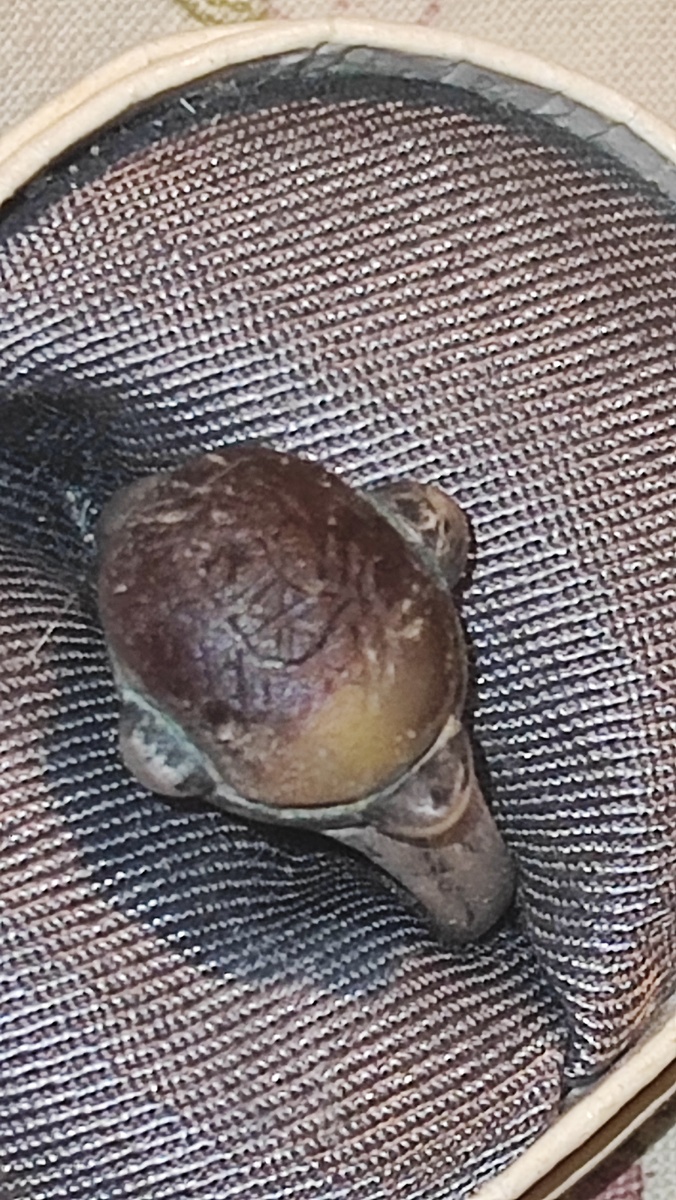В интернете имеется Каталог Rings.guru Можно зайти и посмотреть фото разных перстней... В каталоге есть подразделы, например - Кочевники.... А в нём - ящички: Если зайти в последний... То откроется возможность сортировки: Но и это еще не всё. Можно выбрать: А вот "По типам" - есть такие типы: Если же посетить "с малыми выступами" - то там на фото есть те, которые как мой перстенёк... Они там под номерами: вот номер 24798 - похож на мой тем, что на стекляной вставке что-то нацарапано... Там - птичка, у меня лошадка.... Вот такой у меня: Вставка под "аметрин" (аметист недоделанный) ... Разобрать лошадку не просто, поэтому фотки с разных ракурсов... Хорошо видны туловище, поделенное на две части, грива из трёх полосок, ушки... (на туловище - две Ж, я так понимаю обозначает, что конь - белый) В итернете купил. Из-за "Ж".... Ни у кого нет перстня с белым конём, а у меня - есть. "Как ныне сбирается вещий Олег..." (Пушкин) "И перстень отнял у хазара!" (я) :0) Вставка -