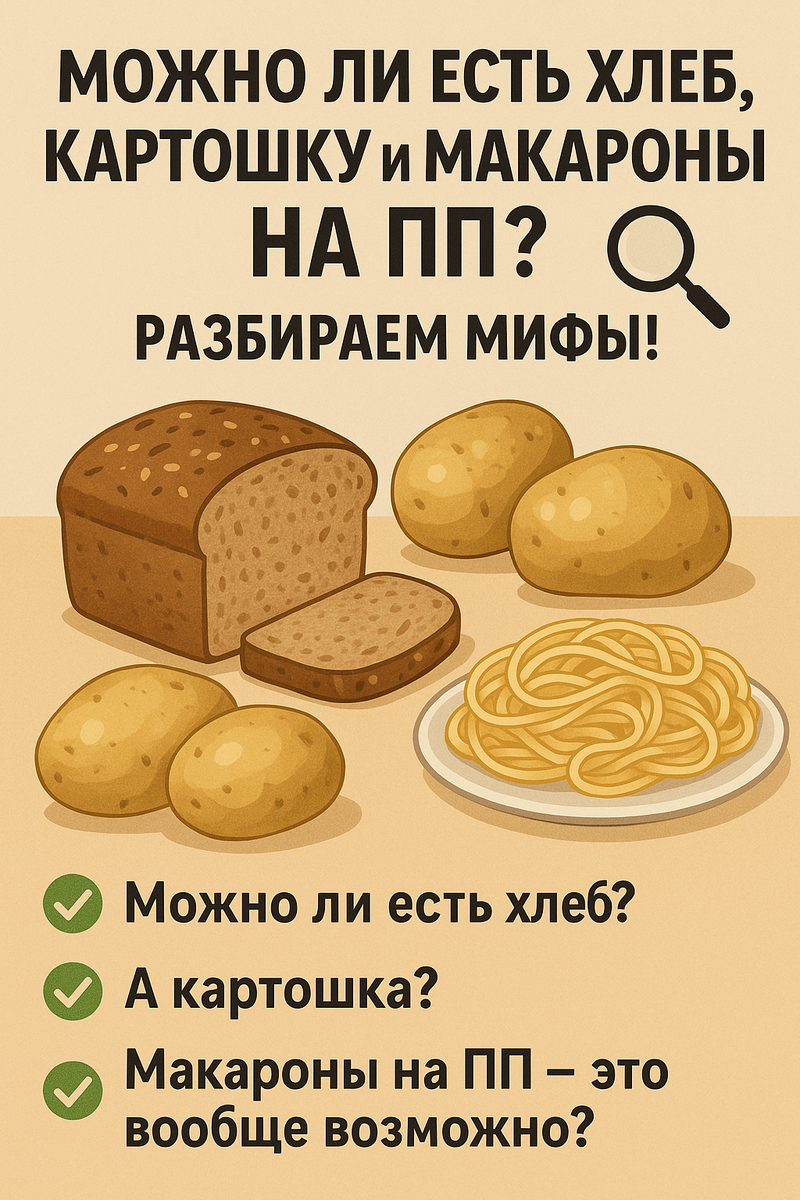 Когда люди переходят на правильное питание, первое, что они делают — исключают хлеб, картошку и макароны. 🤯 Ведь их называют «вредными» и «мешающими похудению». Но давайте разберёмся: правда это или миф? 🔍 ✅ Можно ли есть хлеб? Можно, но не любой! Белый хлеб из рафинированной муки – это быстрые углеводы, которые вызывают скачки сахара. А вот цельнозерновой, ржаной или бездрожжевой хлеб – хороший источник клетчатки и энергии. ✅ А картошка? Картофель – это натуральный продукт, богатый калием, витамином C и клетчаткой. Вредна не сама картошка, а её способ приготовления: картофель-фри и пюре с маслом – не лучший выбор. А вот запечённая или отварная картошка в меру – вполне вписывается в ПП. ✅ Макароны на ПП – это вообще возможно? Да, если выбирать макароны из твёрдых сортов пшеницы и сочетать их с белком и овощами. Тогда они дадут энергию, а не лишний вес. 💡 Вывод: не продукты вредные, а их количество и способ приготовления! Если вы любите хлеб, картошку и макароны – не спешите от