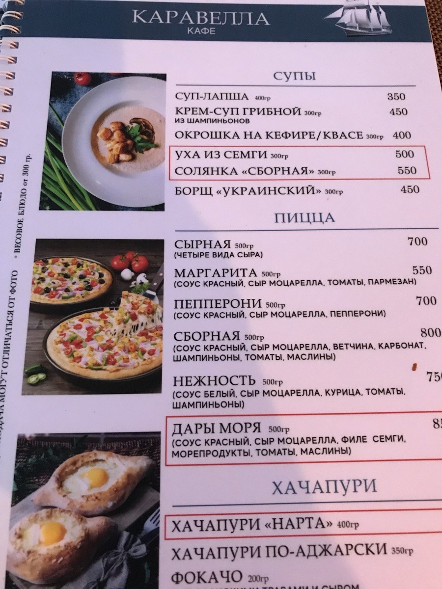 Активный отдых в Сочи уже скоро, а я хочу познакомить вас с этим кафе и проиллюстрировать цены в нем. Кафе находится недалеко от пляжа "Маяк" в Cочи, прямо по главной прогулочной улице. Остановимся на ценах более конкретно. Уха из семги и солянка практически в одну цену и достойны по вкусу. Лично я брал солянку, так как уха в Сочи не всегда похожа на уху, а больше на набор рыбы в воде. Поэтому рисковать не стал и остановился на распространенном супчике. Выбор пицц есть, но дети наши любят только Маргариту, поэтому выбор пал на нее. Супруга обожает хачапури по-аджарски и на фото не видно, что цена блюда 450 рублей. В принципе как и везде один и тот же вкус. Есть можно)). Пиццы по размеру небольшие, но и цена отличная. Мидии можно взять в разном соусе (ну это прям фишка всех заведений Сочи). Берем обычно в сливочно-чесночном соусе. Очень рекомендую. Гренки чесночные и шарики сырные на любителя. Есть и вкуснее. Здесь они были сделаны на скорую руку (как я понимаю). В кафе по вечерам