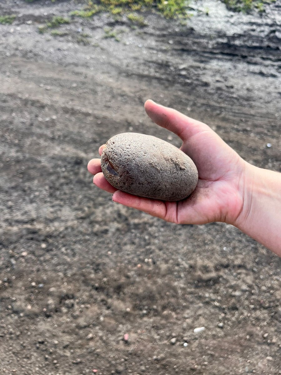Как мне сказали, это порода с карбонатом, скорее всего. Выглядит серенько, но он прозрачный в глубину. Похож на вату, залитую эпоксидкой 🙄. Размерчик аж 12 см по длинной стороне, но пилился он относительно легко.