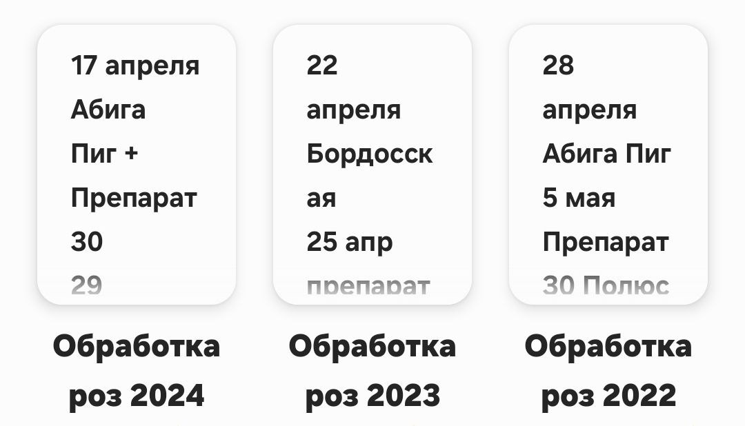 Обещают +17! Когда уже можно открывать розы? Начало апреля шокировало нежданной погодой Уже во всю цвели крокусы и кажется ну всё, можно открывать розы, а тут раз - и снова зима и слой снега в 10 см Удивительно? Честно не совсем, погода каждый год преподносит подобные сюрпризы да и конец марта-начало апреля это очень рано для открытия розариев Сейчас середина апреля, грядёт потепление и примерно с 18 числа я начну открывать свои розы Каждый год я веду некий дневник обработки роз, записываю чем и когда я опрыскиваю розы с начала и до завершения сезона Так вот последние три года я как раз открывала розы в это время, потому что первую обработку я делаю сразу после открытия и весенней обрезки, скрин прикладываю, смотрите Начинать я буду с больших плетистых и английских, их надо поднимать, развязывать, долго держать нельзя иначе потом почки ломаются Самые последние флорибунды и чайно-гибридные, кстати в их местах посадки думаю оставить дуги и спанбонд скрутить рядом, вдруг в мае опять снег