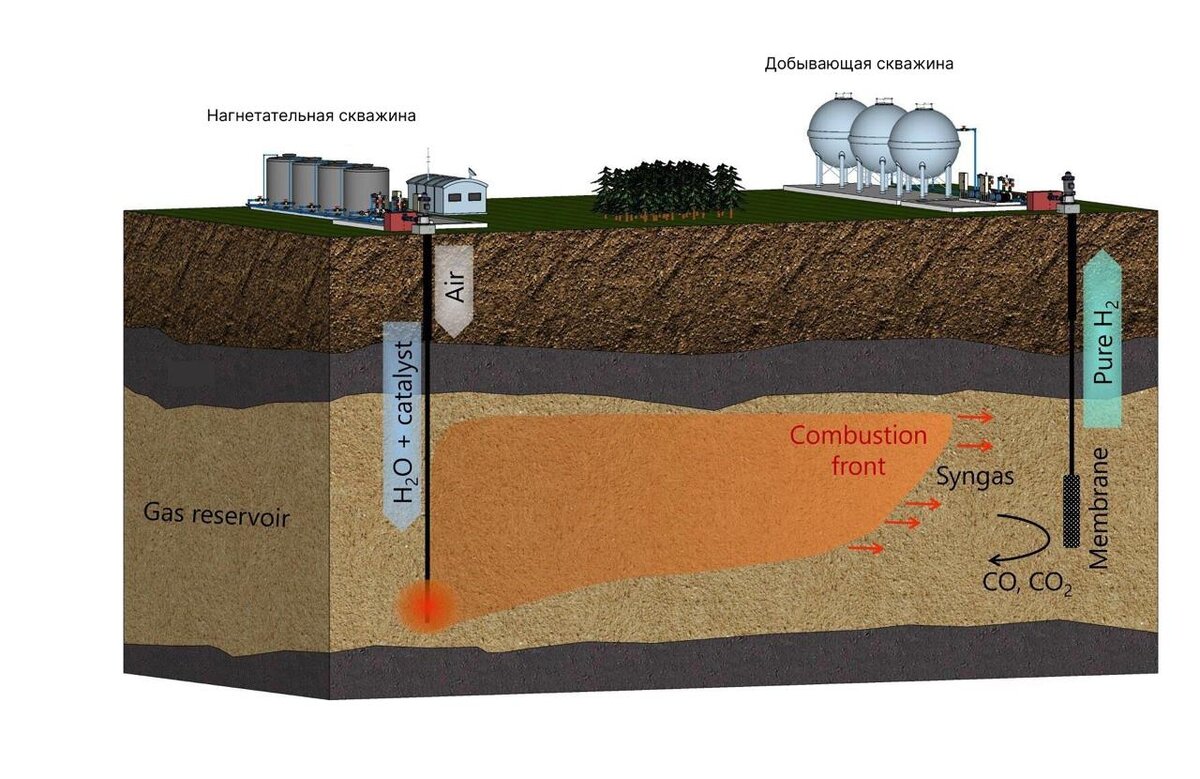 🇷🇺 Команда Сколтеха разработала инновационный метод производства водородного топлива прямо на месторождениях природного газа 🔥 Суть подхода: в скважину закачиваются пар, катализатор и кислород, чтобы инициировать подземную реакцию горения. В результате образуется смесь водорода и оксида углерода — водород извлекается, а углеродные выбросы остаются под землей, не попадая в атмосферу. Эффективность процесса — до 45%, а в лабораторных условиях с пористыми породами — даже до 55%. Технология уже успешно протестирована в лабораториях и теперь готова к следующему этапу — испытаниям на реальных месторождениях. 💬 «Мы показали, что можно превращать природный газ в “зеленый” водород прямо в недрах земли», — говорит руководитель проекта Елена Мухина. #газ #водород #сколтех