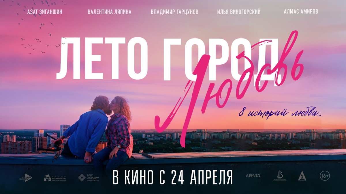 Через 10 дней - 24 апреля в прокат выходит башкирский фильм-альманах «Лето. Город. Любовь.», состоящий из восьми новелл о любви. Фильм снят в узнаваемых местах Уфы: Уфимское ожерелье, парках, Арт-Квадрат, улицы Черниковки и др. В создании фильма участвовала команда башкирских режиссеров: Айнур Аскаров, Виталий Дудка, Айрат Абушахманов, Айсыуак Юмагулов, Руслан Юлтаев, Айдар Акманов и Руслан Римович. В ролях: звезды российского кино Владимир Гарцунов, Валентина Ляпина, Янис Политов, Илья Виногорский, Александр Рожковский и Николай Галлямов, а также уфимские актеры Азат Зиганшин, Алмас Амиров, Рушанна Бабич и др. Проект реализован АНО Центр креативных индустрий «Медиастарт» и кинокомпанией «Аскарфильм» при поддержке фонда Грантов главы Республики Башкортостан. Премьера состоится 20 апреля на Московском международном кинофестивале. Возрастное ограничение: 16+