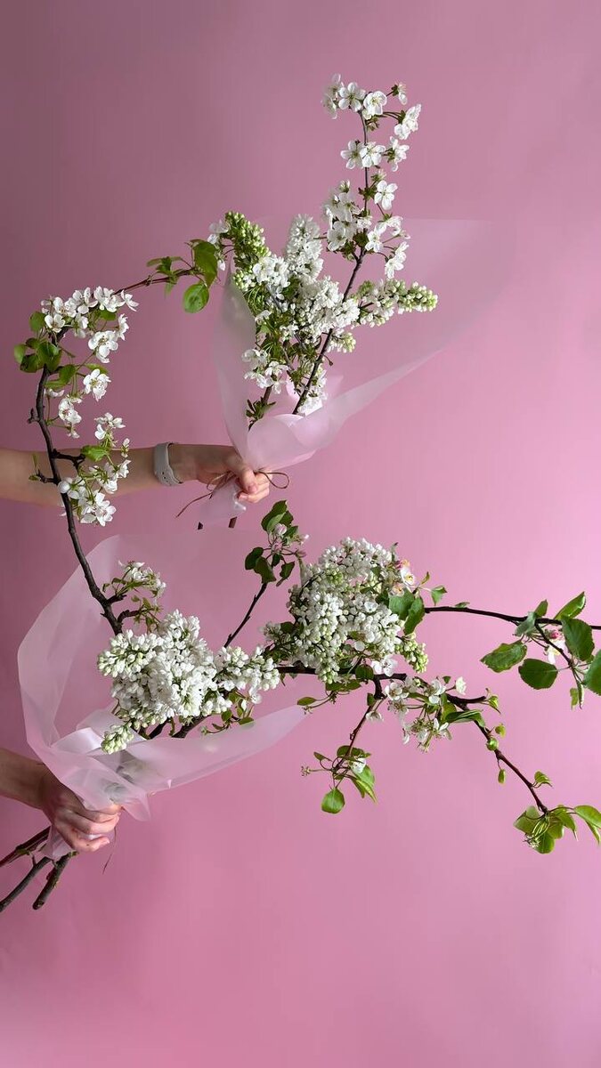 В Москве солнце 😍 В Mate сирень и цветущие веточки! 🌷🌸 Помнится, это дуо особенно запало вам в сердечки! Снова собрали красоту, теперь в белом цвете для вас 🫧 🌸 букетик S 1700.- 🌸 букетик M 3500.- 🌸 букетик L 5500.- Для заказа: @mateflowers_bot