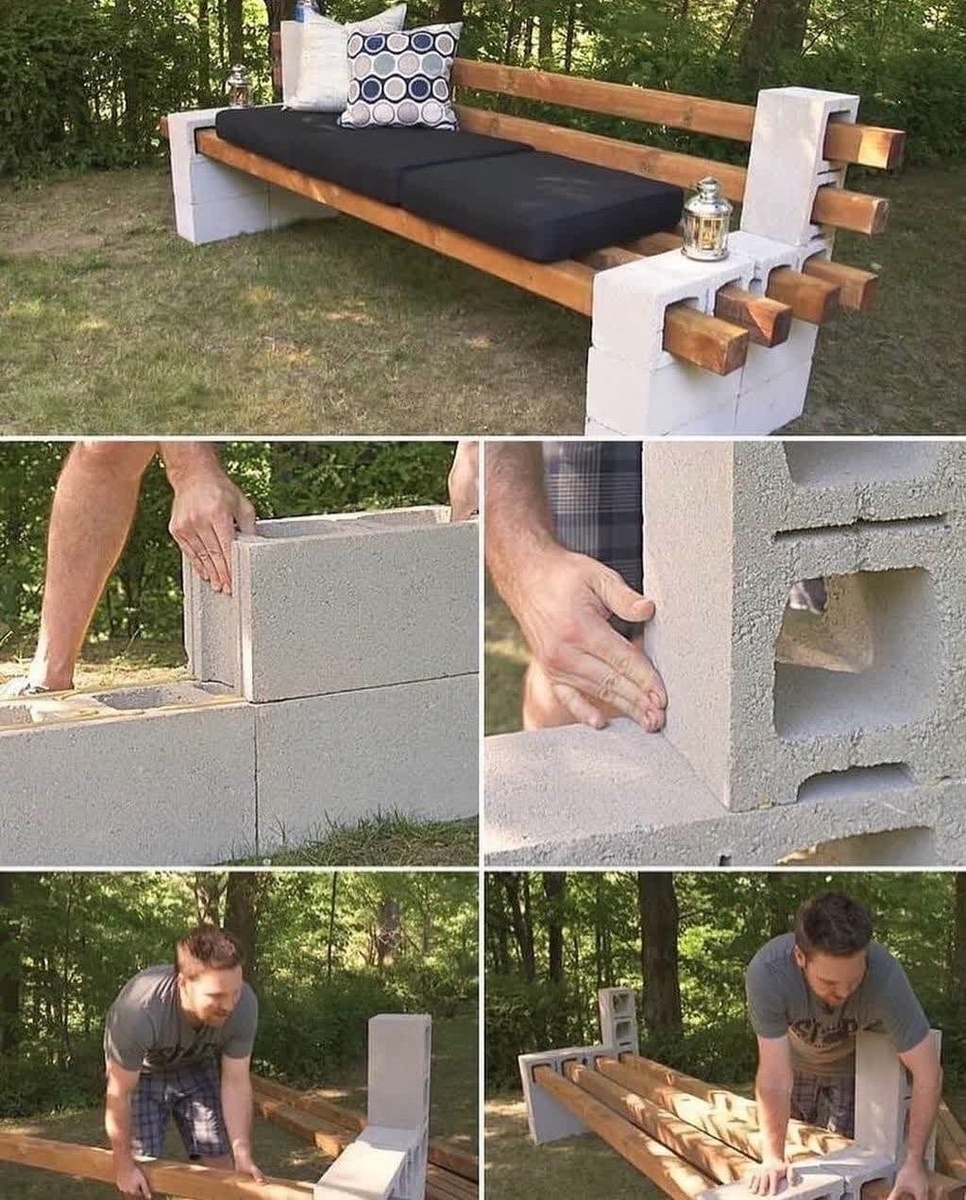 Простая скамейка своими руками из блоков👌 Как вам идея?