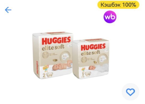 А сейчас снова 100% кэшбэк в приложении, но уже на упаковку детских подгузников Huggies Elit Soft.