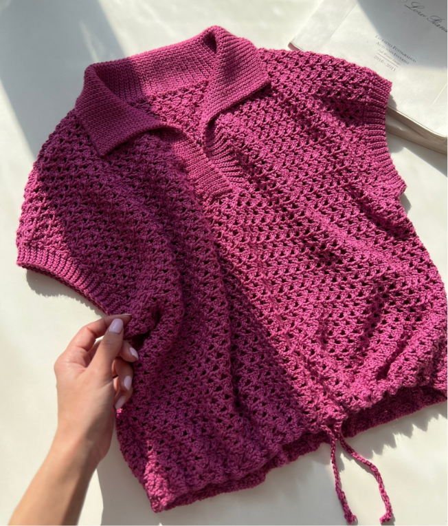 Давно нравятся модели-поло Евгении Шаховой. У неё есть платные мастер-классы, но можно связать по фото и даже другим узором.
