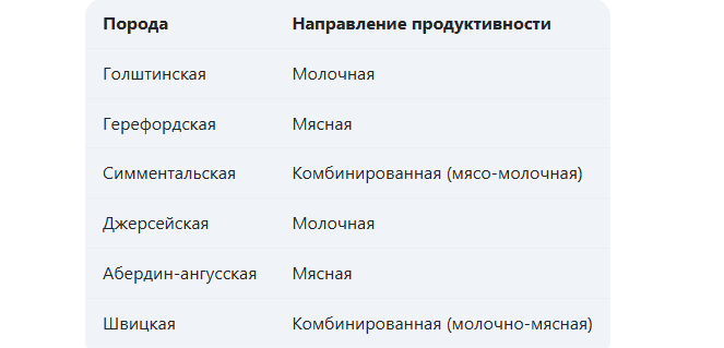 Классификация пород крупного рогатого скота (КРС) - это систематизация, основанная на различных признаках и характеристиках, позволяющая упорядочить огромное разнообразие пород и определить их принадлежность к определенным группам. Существует несколько подходов к классификации пород КРС, в зависимости от критериев, положенных в основу: 1. По направлению продуктивности: Это наиболее распространенная классификация, основанная на преобладающем типе продукции, получаемой от животных. 2. По происхождению: Основана на географическом регионе, где порода была выведена или получила наибольшее распространение. 3. По типу конституции: Основана на особенностях телосложения и физиологических характеристиках. 4. По наличию рогов (рогатости): 5. По экстерьеру (внешнему виду): Основана на оценке телосложения животных, пропорциональности отдельных частей тела, выраженности породных признаков. 6. По генотипу: Основана на генетических исследованиях и анализе ДНК пород. Важные моменты: Примеры пород КРС и