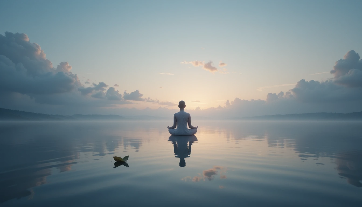 Представьте, что ум, как гладь озера. Волны (мысли) поднимаются и опадают, но вода остаётся чистой. Она не становится «хорошей» от приятных волн и «плохой» от бурных. Она просто отражает.