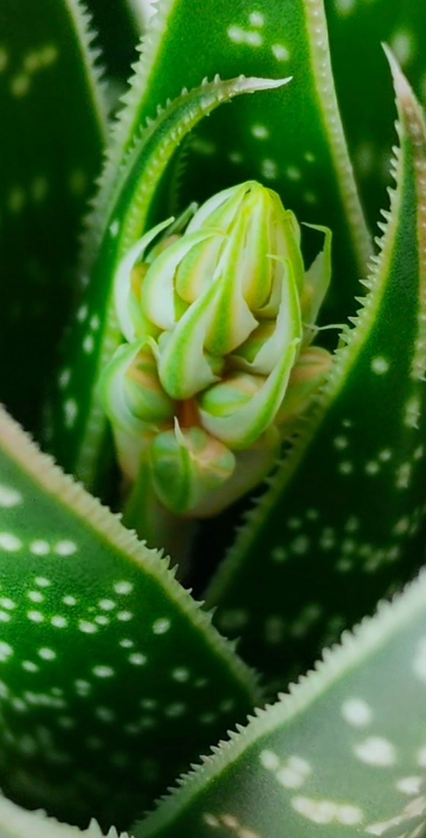Сегодня у моих мелких цветов банный день 🙂👌 Понесла свои растюшки в ванную, под душ и вдруг... увидела в центре что-то прекрасное, чего раньше не замечала Глазам своим не поверила! Да мой красавец цвести надумал! А так и не скажешь - стоит себе на подоконнике тихонечко скромный мой и стоит 🙂🌱 А загляни внутрь - там такое чудо, такая тайна... Купила я его в конце декабря. Так бы и не вспомнила, но нам в магазине докУмент 😄 дали. И я его чудом сохранила 👌 Радости моей нет предела! Понятия не имею, как будет выглядеть сам цветок. Пошла в интернет, чтобы на эти фото полюбоваться. Фотографий много и они разные. От скромной веточки до шикарного пышного цветения. А какая красота у цветущих алоэ (их очень много видов и сортов) в дикой природе! Просто слов нет! А мы будем стараться разводить такую красоту у себя дома. Для души, для радости, для зелёного счастья цветовода-любителя 🙂🌱❤️ Надеюсь, что мой алоэ вера тоже порадует когда-нибудь цветением! 🙂👌 Тем боле