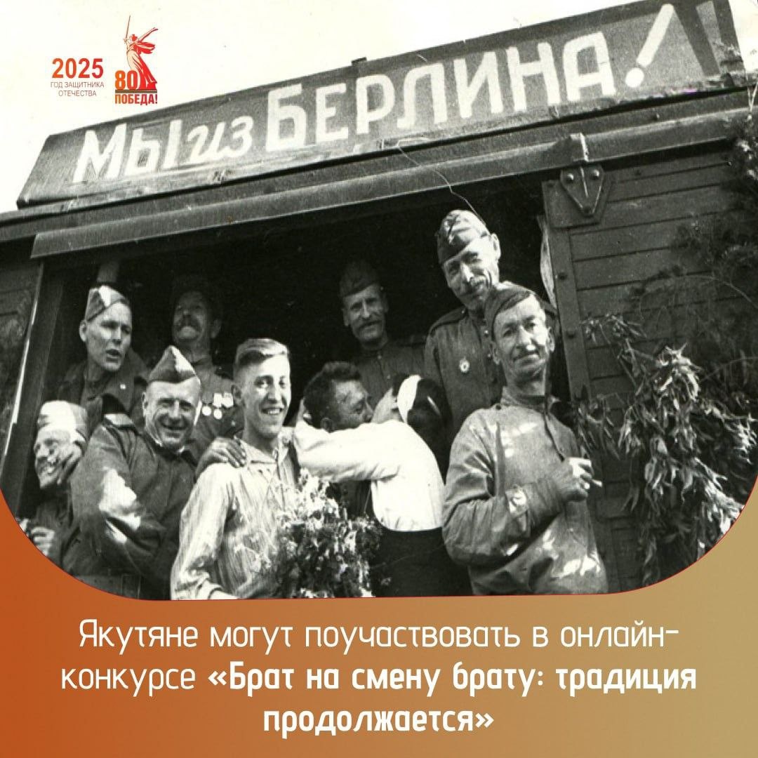 Якутяне могут поучаствовать в онлайн-конкурсе «Брат на смену брату: традиция продолжается» 📌 История России знает много примеров воинской преемственности, и Якутия не исключение. Расскажите о членах своей семьи, встававших друг за другом на защиту Отечества в рамках международного онлайн-конкурса «Брат на смену брату: традиция продолжается». Кто может участвовать? 🤝 все желающие от 11 лет Конкурс проводится по двум направлениям: 🔻 «Продолжатели традиции братьев Котельниковых» 🔻 «Специальная военная операция» Правила участия 1️⃣ Участники готовят проекты, научные статьи, авторские экскурсии, эссе, прозу, поэзию, сценарии, графический роман, живопись, авторские песни, видеосюжеты, фоторепортажи, анимацию, видеоигры и настольные игры 2️⃣ Работы размещаются на Яндекс диске 3️⃣ До 27 мая заявки со ссылками на Яндекс диск направляются на почту: metod@primhistory.ru 4️⃣ Награждение со 2 августа по 28 сентября ➡️ Подробнее о конкурсе: https://clck.ru/3LQira