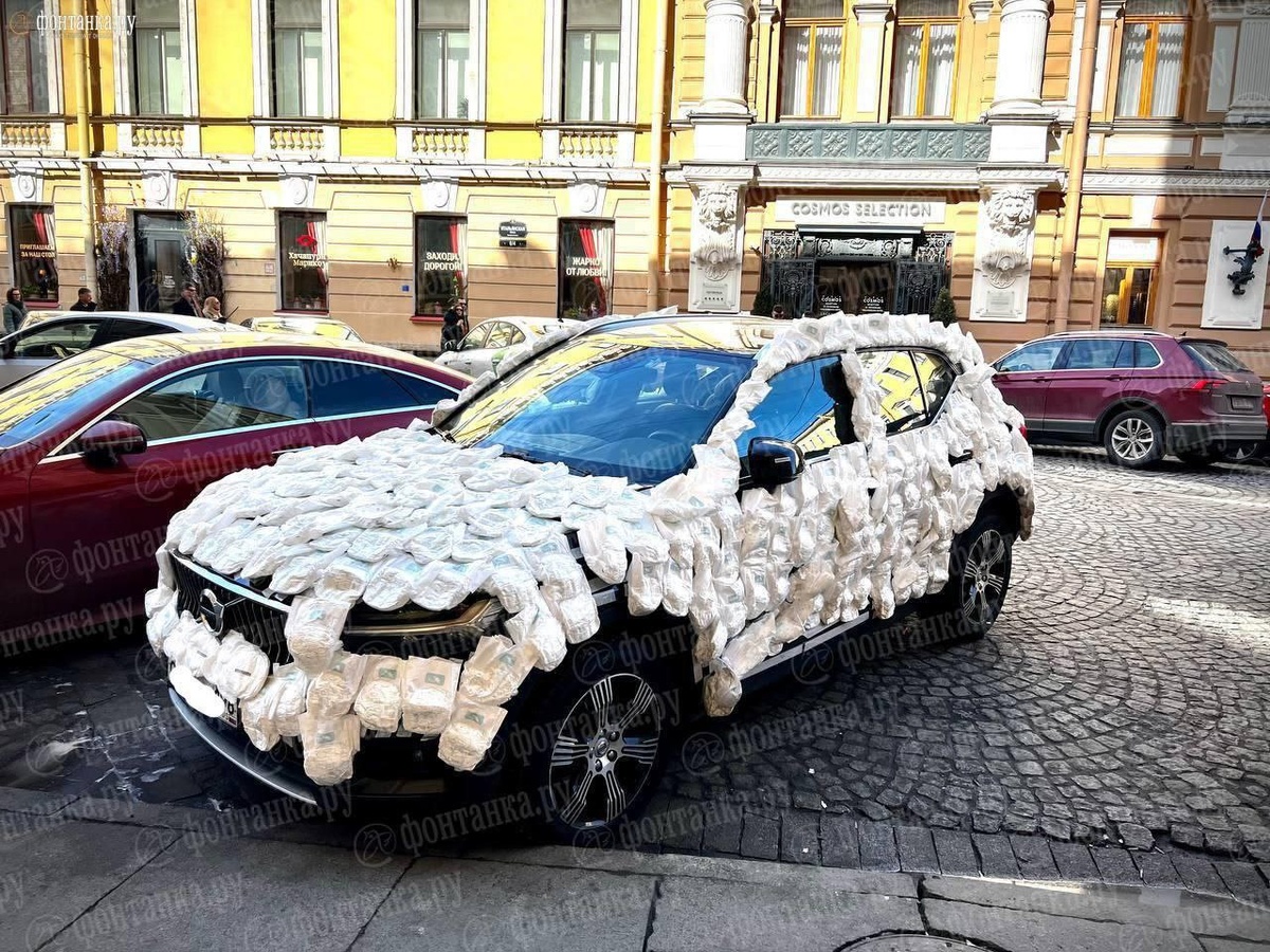 Автомобиль в подгузниках заметили на улицах Питера