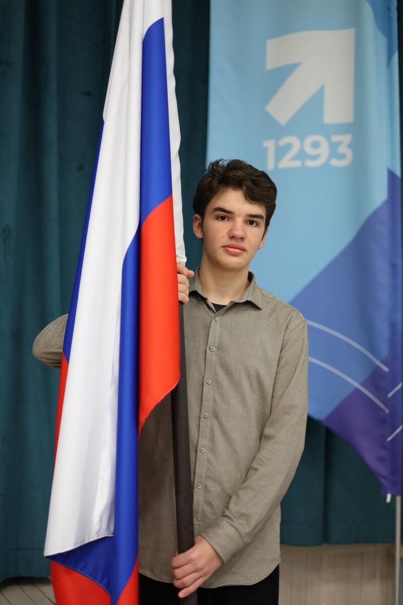 🇷🇺 Сегодня, 14 апреля, почетное право вынести и установить флаг Российской Федерации предоставили ученику 9 «Д» класса Кириллу.