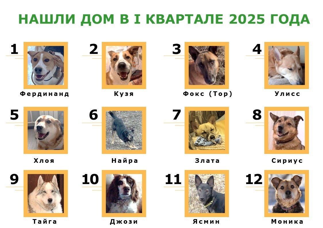 Как будто бы совсем недавно мы подводили итоги 2024 года, как вот уже завершился I квартал нового года🙈 Как и в любой уважающей себя организации мы решили подвести итоги за 3 месяца активной работы по пиару🔥Подбили цифры по пристройству наших собак, и вот, что у нас получилось: ❣️12 собак уехали жить свою лучшую жизнь в новые дома❣️ Делимся с вами счастливыми, а иногда и надменными мордашками домашних хвостов в небольшой инфографике💌 Со всеми на связи - предпосылок к возвратам нет (тфу-тфу-тфу, мы не суеверные, но в таких делах всегда страшно сказать лишнего) А знаете, что самое интересное? Примерно 70% собак из этого списка прямо или косвенно уехали по рекомендации / знакомству, когда кто-то, просто будучи на нас подписанным, порекомендовал нас или наших подопечным своим друзьям и знакомым. Как будто бы вот она, волшебная и всеобъемлющая сила социальных сетей💪🏼 Прекрасным бонусом к представленному списку становится булли Гретта, которая никогда не числилась подопечным «ЗОО ДОМа»