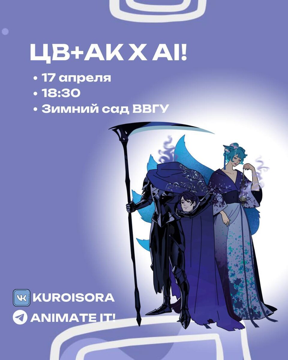 Чемпионат АК+ЦВ+AI=КВИЗ в самом разгаре! 🗓️Дата: 17 апреля 📌Место: Зимний Сад 👨🎨Тема: ВСЕВСЕЛЕННСКИЙ! 🎬 Готовьте свои знания о мультфильмах, аниме, анимационных сериалах и полнометражных шедеврах! Вас ждут вопросы про любимых персонажей, культовые саундтреки, историю анимации и даже самые редкие анимационные факты. Количество мест ограничено, так что поторопись и регистрируй свою команду прямо сейчас по ссылке: ❤️