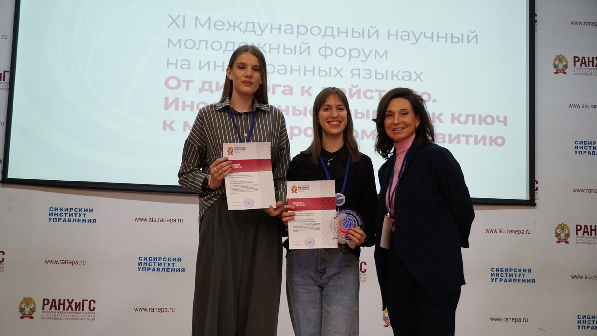Студентки ПензГТУ – Елена Сазонова и Екатерина Шатрова – вернулись победителями Всероссийской олимпиады по иностранным языкам, которая проходила в рамках XI Международного научного молодежного форума на иностранных языках «От диалога к действию. Иностранные языки как ключ к международному развитию». Два дня – 10 и 11 апреля – были наполнены серьезными испытаниями для аспирантов, студентов, учащихся общеобразовательных учреждений и учащихся заведений среднего профессионального образования из разных стран Форум, проходивший на базе Сибирского института управления РАНХиГС ( г. Новосибирск) с 10 по 11 апреля, включал два отдельных конкурса: · научную конференцию и дискуссию, во время которых участники представили результаты своих научных работ и обсудили актуальные вопросы на одном из четырёх языков: английском, французском, немецком или русском как иностранном; · всероссийскую олимпиаду по иностранным языкам «В первый день мы выступали в секции «Педагогика и психология» с докладом"The g