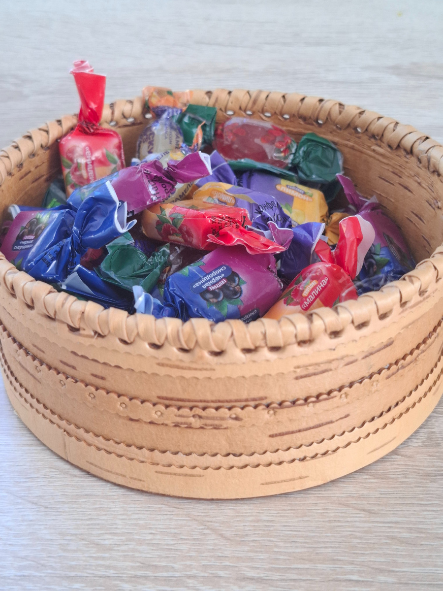Приветствую читающих. Интересно создавать что -то новое, еще интересней когда получается. Мне понравился вот такой формат туеска. Приспособила под конфеты. А можно как бардачок, это когда поставил на видном месте где- нибудь в прихожей и скидываешь туда все , что завтра может пригодиться: ключи , карты и.т.д., удобно. Диаметр 13 сантиметров, высота 6,5 Обычно мебель одного цвета и так подходит под бересту или береста под... Обратный процесс- обшила берестой край отверстия под прошивку оформление боковинки, основа уже готова , нарезка фигурными ножницами лент для украшения. Между делом еще подставку под горячую кружку . Три детали. Верх украсила, а две детали просто целые листы. Обработала марганцем, потом его удалила излишки. Такой результат -подставка под горячую кружку с чаем. Живите с удовольствием. Всем добра, тепла и мира. Читайте, подписывайтесь. Отзывайтесь. Просто делюсь добром.