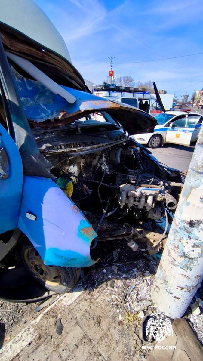 Газель врезалась в столб. Выбраться самостоятельно водитель не смог - он оказался зажат в автомобиле, сотрудники МЧС России деблокировали дверь и освободили мужчину.