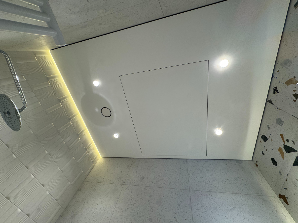 Монтаж натяжных потолков в санузлах – это задача, требующая особого подхода, особенно если речь идет о креплении профиля к керамограниту. Сверление плитки может привести к ее повреждению, что не только увеличивает затраты, но и создает дополнительные проблемы. В этой статье мы рассмотрим эффективные способы минимизации рисков повреждения керамогранита и сэкономить при установке натяжных потолков. Первый способ, который стоит рассмотреть, заключается в том, чтобы установить керамогранит не вплотную к основному потолку, а оставить зазор в 3-5 см. Это пространство можно заштукатурить, что позволит избежать сверления плитки при монтаже натяжного потолка. В таком случае крепление профиля будет происходить непосредственно к бетонной стене, что гарантирует безопасность для керамогранита. Это решение не только защищает плитку от повреждений, но и позволяет заказчикам избежать дополнительных расходов на сверление. Таким образом, можно значительно сократить бюджет на ремонт, сохранив при этом вы
