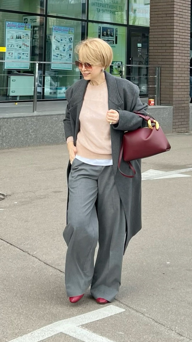- Избегание "молодёжного" - хотя некоторые элементы, адаптированные под возраст, могут освежить. Например, джинсовая куртка с платьем или белые кроссовки с пальто.