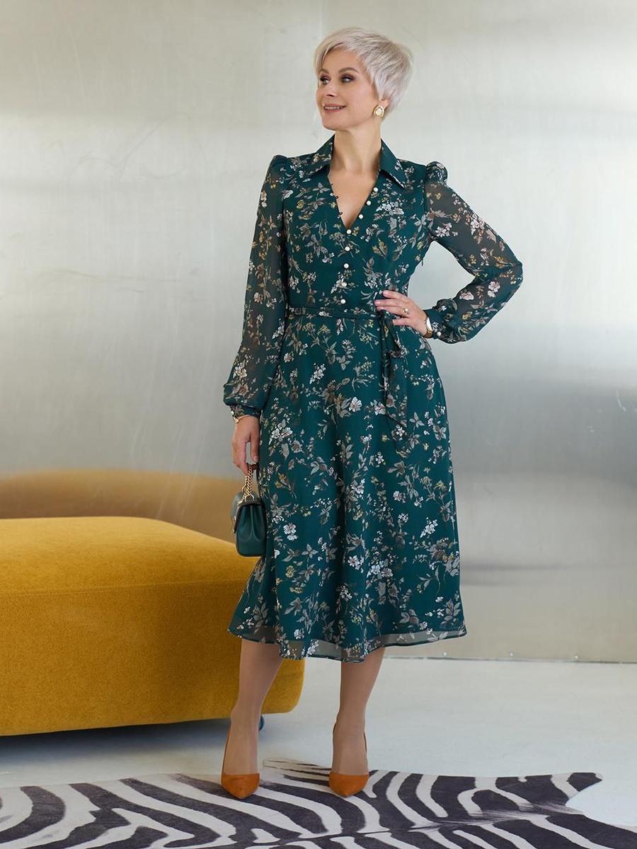 Красивое изумрудное с цветочным принтом платье для праздника и любого дня. Последние размеры 44, 50, 54