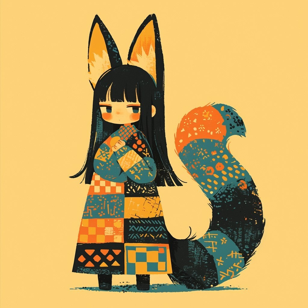 Создано на основе запроса: A full-length girl with fennec ears and a tail stands in a beautiful bright suit with patterns, black hair and dark eyes --- Автоперевод: Девушка с полноразмерным с ушами и хвостом стоит в красивом ярком костюме с узорами, черными волосами и темными глазами Как тебе такое изображение? 🤔 https://dzen.ru/id/65c0c65c86e4f837c27b24d7 #ИИ #AI #нейросеть #midjourney #art