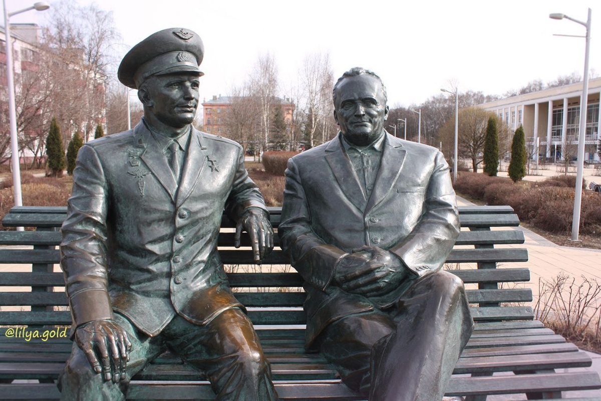 Памятник «Звёздные люди Земли» 📍 МО, Королёв, Центральная площадь рядом с ЦДК им. Калинина Памятник конструктору Сергею Павловичу Королёву и первому в мире космонавту Юрию Алексеевичу Гагарину 🚀 Памятник открыли 12 января 2017 года (в честь 60-летия запуска первого искусственного спутника Земли). Скульптор: Виталий Казанский Скульптурная композиция основана на известной фотографии 1961 года. Памятник установлен на площади у Дворца культуры им. Калинина на том месте, где раньше был установлен спутник, автором которого и был С.П. Королёв. Фотограф: Лиля Голд (Lilya Gold)