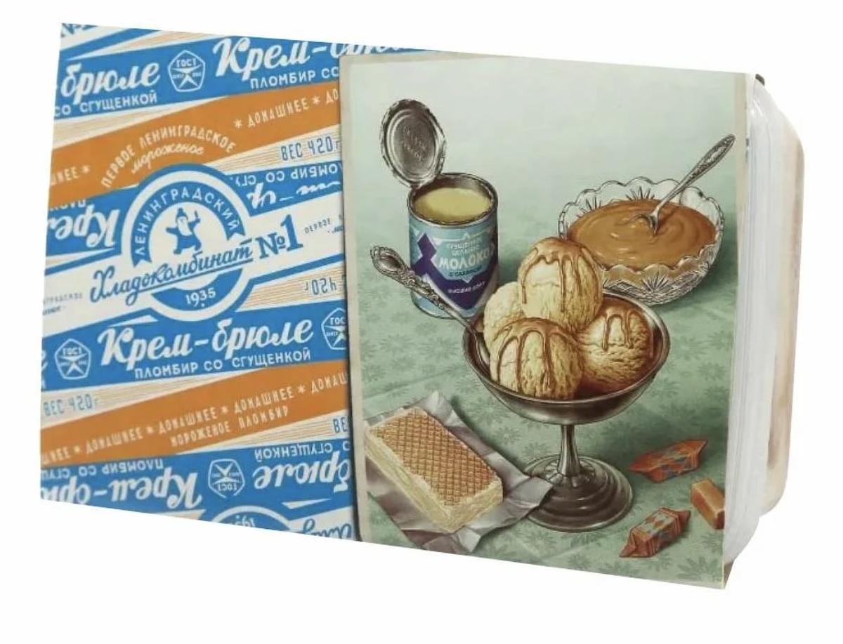История появления мороженого крем-брюле в СССР связана с дефицитом какао-бобов в Латинской Америке. Для выпуска мороженого «Лакомка» не стало хватать ингредиентов для глазури из молочного шоколада. Сначала сделали ореховую глазурь, в которой заменили какао на орехи, и получили новое мороженое «Щелкунчик».