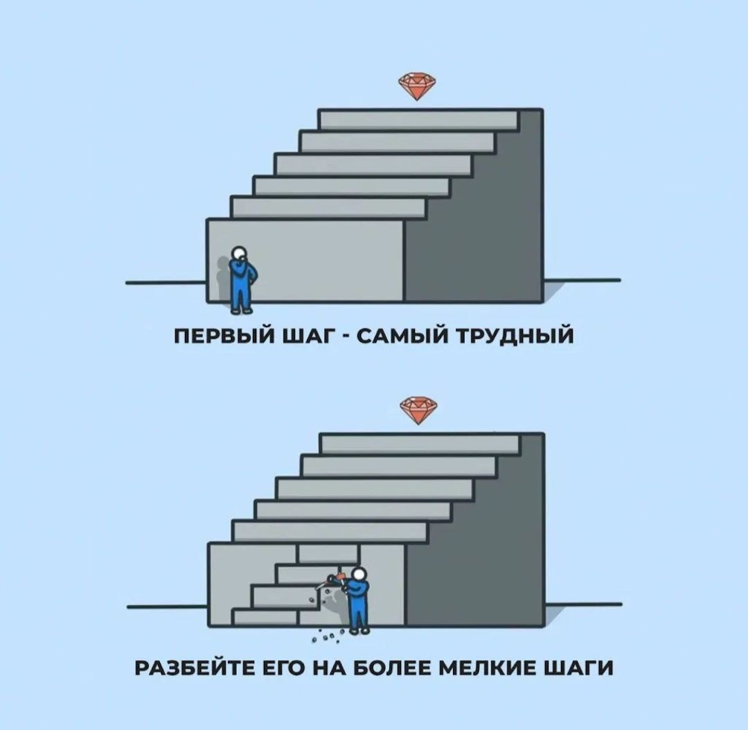 Люди ставят большие цели,но часто пренебрегают маленькими шагами на пути к результату. Стартовые цели должны быть простыми,чтобы у вас не возникало психологического сопротивления. Каждая маленькая победа увеличивает самооценку и приближает вас к цели. Поэтому всегда делите большие цели на маленькие шаги. Это увеличит ваши шансы на успех и сохранит здоровье и энергию и поможет двигаться к мечте легко. #искусствожить #искуствомаленькихшагов