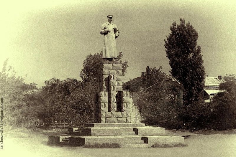 Памятник И. В. Сталину в Белгороде Памятник был установлен на перекрёстке улиц Чичерина и Новомосковской (совр. Свято-Троицкий бульвар и пр. Б.Хмельницкого) в начале аллеи "старого" сквера в 1940 году. Сейчас на этом месте тротуарная дорожка к подземному переходу. Первый памятник Сталину возводился силами отдела коммунального хозяйства Белгородского горисполкома. Каменный постамент для придания большей масштабности был облицован рельефной плиткой, сделанной по специальному заказу согласно проекту. Общая стоимость сооружения составила 20 тысяч рублей - сумма значительная, для сравнения - на озеленение города ежегодно ассигновались меньшие средства. После сооружения монумента планировалось комплексно благоустроить сквер, разбить цветники вокруг пьедестала, обновить скамейки - привести территорию в образцовый порядок. По понятным причинам завершить намеченное не получилось. Памятник простоял всего лишь около года и даже не успел, как следует, запомниться довоенному поколению горожан. Р