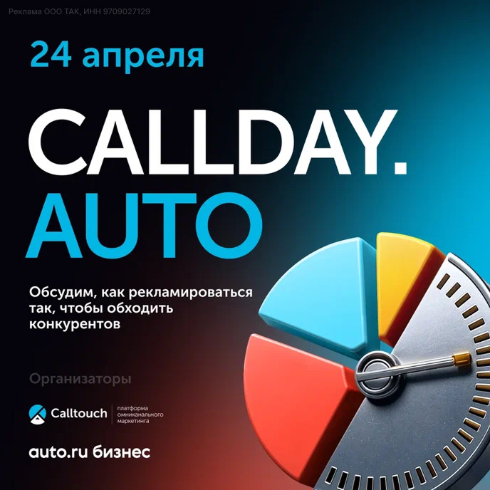 24 апреля у наших друзей, агентства Calltouch, пройдёт ежегодная конференция Callday.Auto, на которой эксперты Calltouch, Авто.ру Бизнес, VK, VBI, АГ Авилон и другие расскажут о привлечении, конверсии и аналитике в индустрии авто, а также поделятся свежими кейсами. Что интересного подготовили для маркетологов? 🔸 Как рекламировать автосалон в современных реалиях и откуда брать лиды; 🔸 Как удержать фокус клиента и раскачать CRM-маркетинг; 🔸 Как считать результаты рекламных кампаний, чтобы грамотно распределять бюджет. Регистрируйтесь, чтобы не пропустить 👉 https://golnk.ru/5DzyM/?erid=2SDnjdLiQ8U