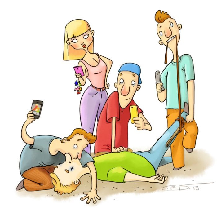 (Отмечай себе, на какие вопросы "ДА", на какие "НЕТ") 1. Если на моих глазах случилось ДТП, я должен вызвать службы и вытащить пострадавших из машины. 2. Если при оказании первой помощи я что-то сделаю не так (например, сломаю ребро при сердечно-легочной реанимации) - меня потом "затаскают", оштрафуют или вообще посадят 3. Если человек упал в обморок, то чтобы привести его в сознание я поднесу к его носу ватку с нашатырным спиртом 4. Если у кого-то случился приступ эпилепсии, необходимо разжать ему зубы, вставив туда ложку или что-либо ещё, чтобы пострадавший не откусил себе язык 5. При утоплении в первую очередь необходимо вылить всю воду из лёгких пострадавшего, перекинув его через колено или сильно потрясти его вверх ногами 6. Я умею оказывать первую медицинскую помощь. * Готовы? А теперь результат! Если хоть одно утверждение вы отметили как верное - вы можете убить человека. К огромному сожалению, навыки правильного оказания первой помощи у большинства населения иск
