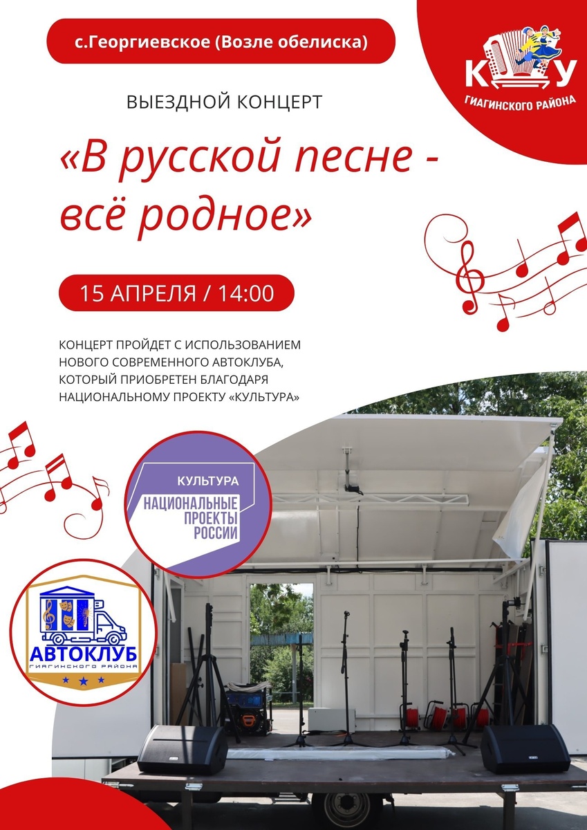 В с. Георгиевском состоится выездной концерт, приуроченный к Международному дню культуры Мероприятие пройдет с использованием автоклуба, что позволит создать праздничную атмосферу прямо на улице. Концертная программа будет включать выступления творческих коллективов и солистов Тамбовского СДК, представляющих различные жанры искусства – от народной музыки до современных эстрадных номеров. Зрители смогут насладиться яркими костюмами, зажигательными танцами и проникновенными песнями, отражающими богатство и разнообразие культурного наследия.