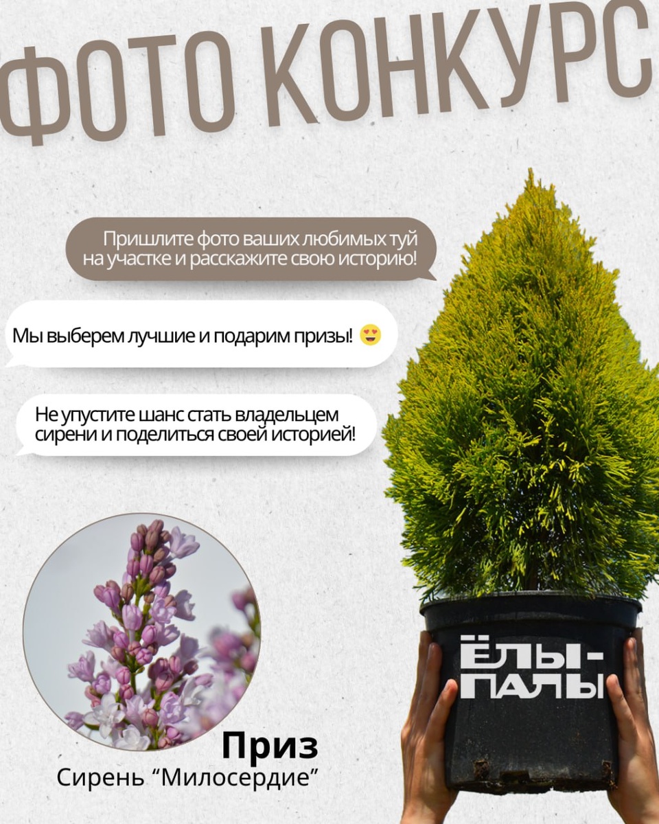 Не упустите шанс стать владельцем шикарной сирени и поделиться своей историей! Мы с нетерпением ждём фото ваших прекрасных туй! 🌱