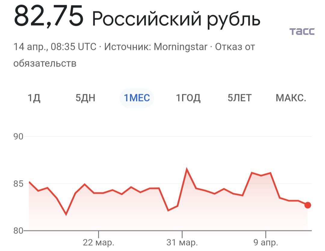 Курс доллара опустился до 82 рублей на российском межбанковском рынке впервые с 19 марта, следует из данных площадки «Финам». ⭕ Подписаться | Прислать новость | Буст