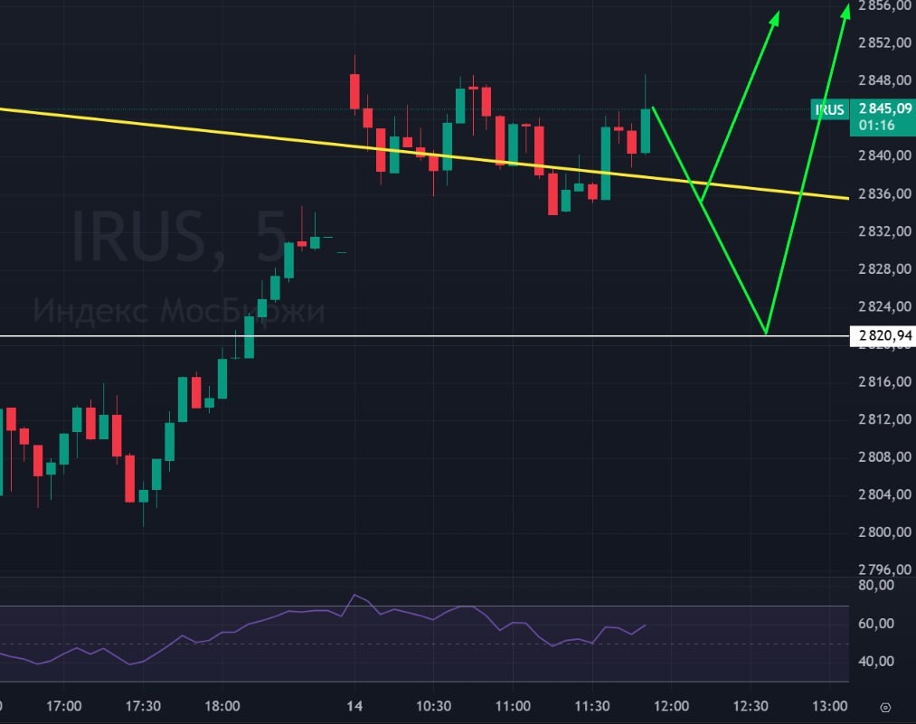 🏦 Индекс Мосбиржи! В целом индекс IRUS держится очень хорошо на фоне того, что позитивные новости выходных дней опровергли, даже не смогли закрыть гэп, который появился после выходных. Это уже третий гэп подряд вверх. Текущие новости тоже несут мало позитива: 🏠 Трамп заявил, что скоро примет решение по Ирану 🏠 Минторговли США проведет по указанию Трампа расследование в отношении импорта полупроводников. Оно может привести к введению новых тарифов на чипы — Politico 🏠 Мораторий на удары по энергетике не соблюдался Украиной, к моменту его истечения нужно все проанализировать, обменяться соображениями с США, заявил Песков ТАСС 🏠 Вoзмoжнoсть прoдления мoрaтoрия нa удaры пo энергетике пoсле 16 aпреля будет зaвисеть oт решения Путинa — Песков — ТАСС 🏠 Зеленский дал интервью телеканалу CBS News, где высказался против переговоров с Россией 🟢 По хорошему было бы нормально, сходить закрыть утренний гэп, возможно, даже протестировать пробитую линию 2820, после чего двинем вверх. Се