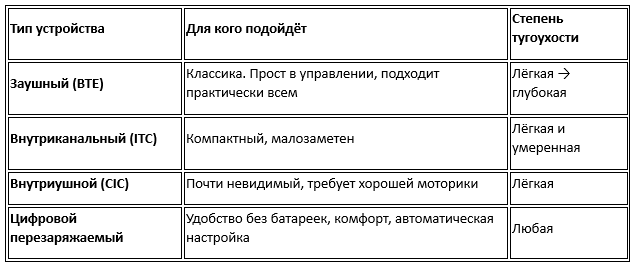 Прежде чем решить, какой слуховой аппарат подобрать пожилому человеку, полезно разобраться в типах моделей: