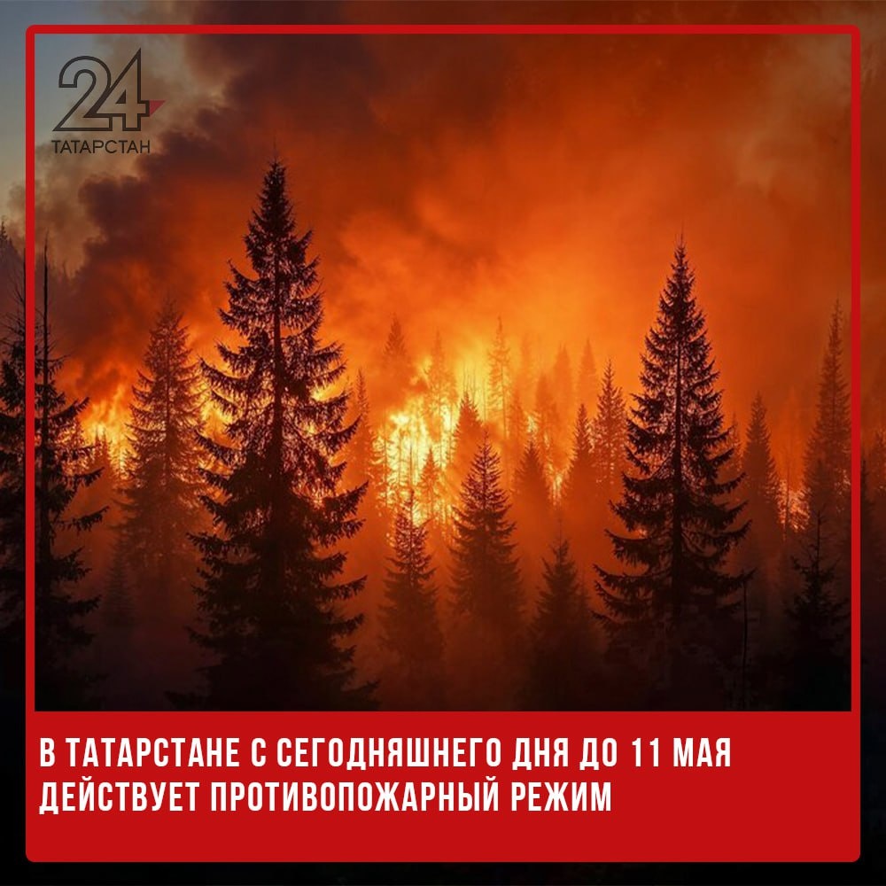 🚫🔥В Татарстане с сегодняшнего дня до 11 мая действует противопожарный режим В этот промежуток времени в республике запрещено разводить костры, самостоятельно запускать салюты и жарить шашлыки. Подписаться на Татарстан-24 Отправить новость