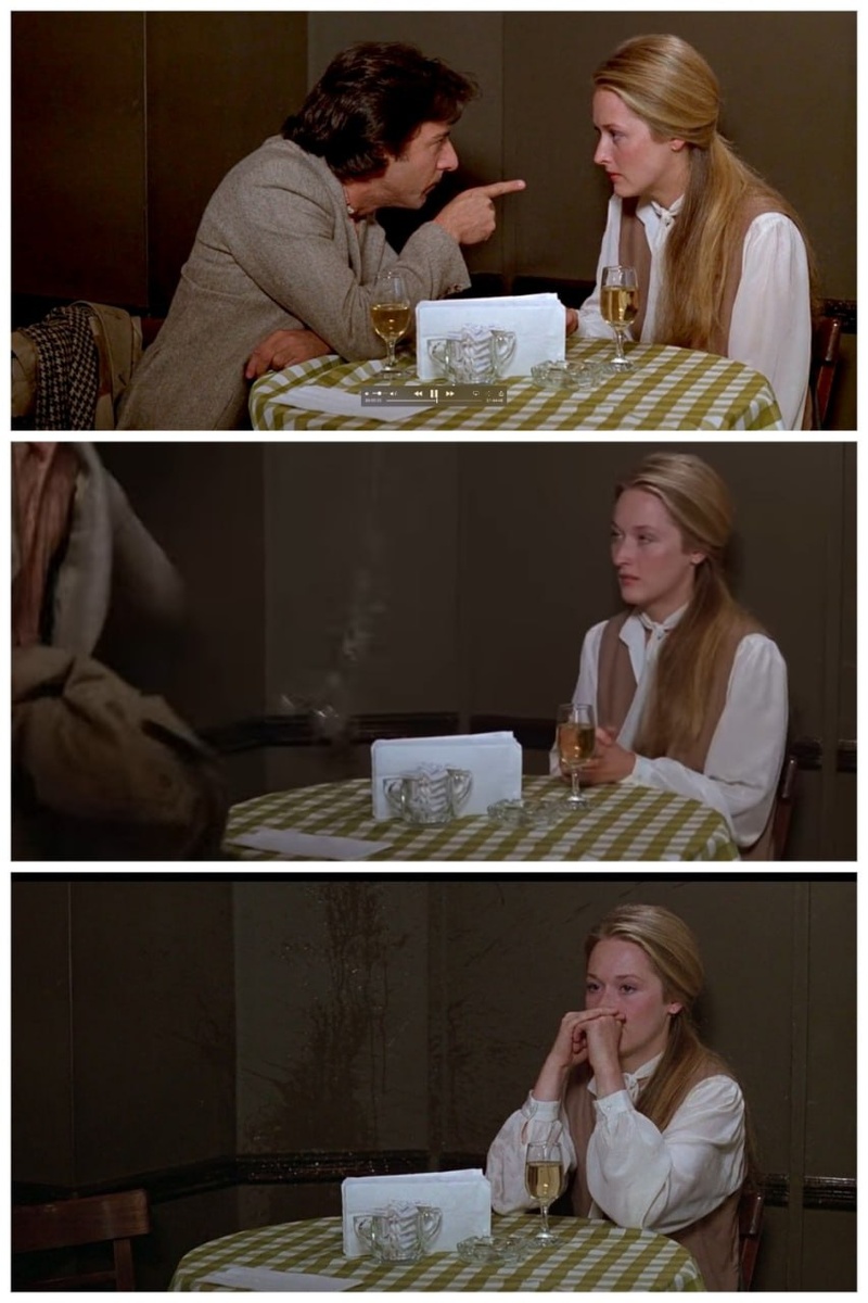 При этом на площадке установилась напряжённая атмосфера. Приверженец системы Станиславского Дастин Хоффман старался оставаться в образе, к тому же сам находился в процессе развода. Хоффман ревностно относился к Мэрил Стрип, не хотел, чтобы та делала своего персонажа симпатичнее и уязвимее, чем в начальном сценарии, давил психологически (напоминал о смерти её возлюблённого, актёра Джона Казале) и даже физически.