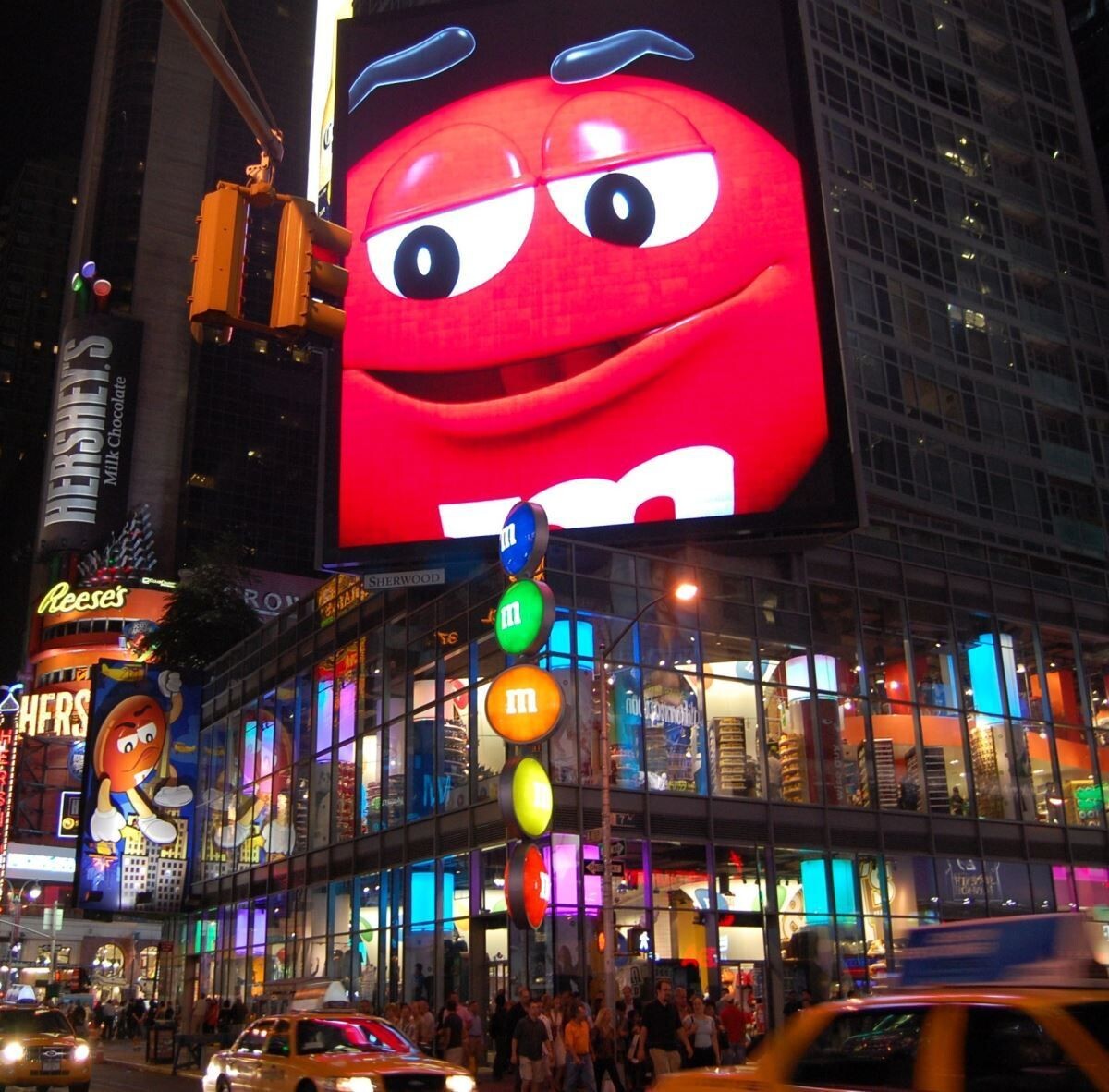 Магазин M&M's World на Таймс-сквер расположен в самом сердце Манхэттена, по адресу: Broadway, 1600, 48-я улица, Нью-Йорк. Это один из самых известных и посещаемых магазинов данного бренда, демонстрирующий широкий ассортимент продукции M&M's и предлагающий уникальный опыт для посетителей. Магазин занимает площадь около 25 000 кв. футов и расположен в культовом районе Таймс-сквер, что обеспечивает ему высокий пешеходный трафик. Удобное расположение позволяет посещать его как местным жителям, так и туристам, заинтересованным в узнаваемых брендовом опыте. - Многообразие вкусов и цветов: Магазин предлагает более 20 различных вкусов и цветов конфет M&M's, включая эксклюзивные новинки, которые отсутствуют в традиционных торговых точках.