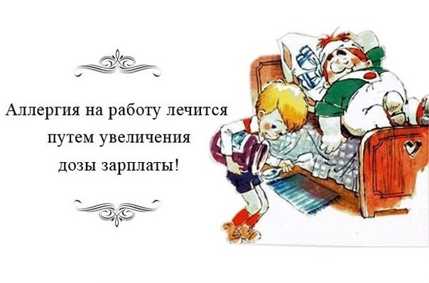 - Диагностировала у себя аллергию на деньги... Когда вижу свою зарплату: слезятся глаза и я начинаю чихать на работу. И только премия временно снимает симптомы.