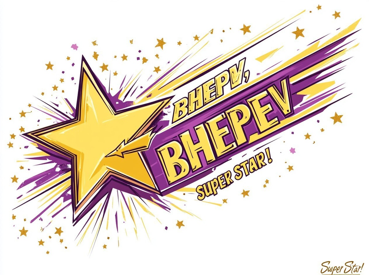 Создано на основе запроса: A futuristic style logo featuring the text "BHEPEV, TOABKO BHEPEV" in yellow and purple stripes with gold stars on a white background. An arrow is pointing to one of the stars, signifying "Super Star!" The image is a vector artwork with a solid background. --- Автоперевод: Логотип футуристического стиля с текстом «BHEPEV, Toabko Bhepev» в желтых и фиолетовых полосах с золотыми звездами на белом фоне. Как тебе такая генерация? 🤔 https://dzen.ru/id/65c0c65c86e4f837c27b24d7 #ИИ #AI #нейросеть #midjourney #art